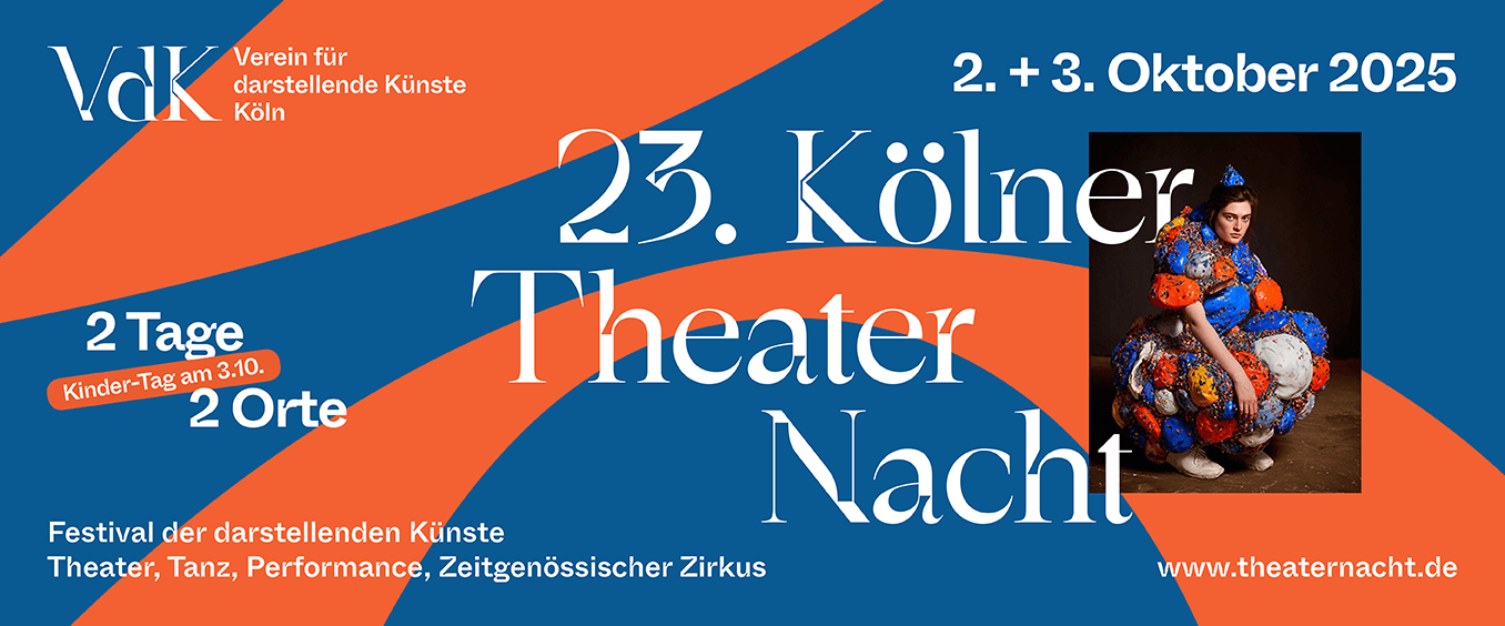 Die Kölner Theaternacht findet im Oktober 2025 zum 23. Mal statt. Schon zum zweiten Mal wird wegen der Größe und Vielfalt der Kölner freien Szene aus der einen Theaternacht ein mehrtägiges Festival für klein und groß.